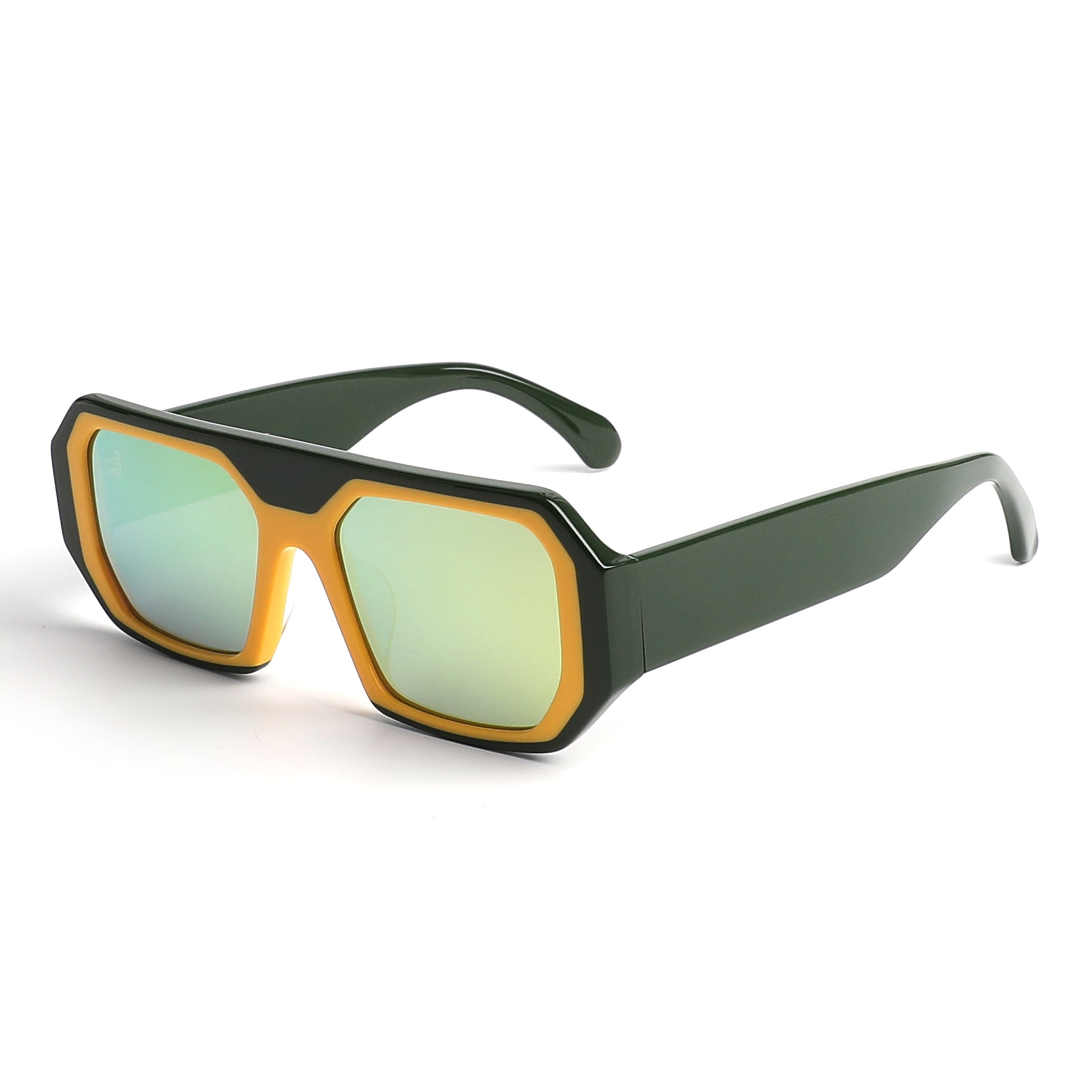 Make a bold statement with the Green Cheddar frames from ProLook Eyewear. This vibrant mix of deep green and rich gold creates a stunning, standout look that embodies both elegance and individuality. Expertly handcrafted in Italy, each pair showcases the superior craftsmanship and attention to detail that define ProLook Eyewear.